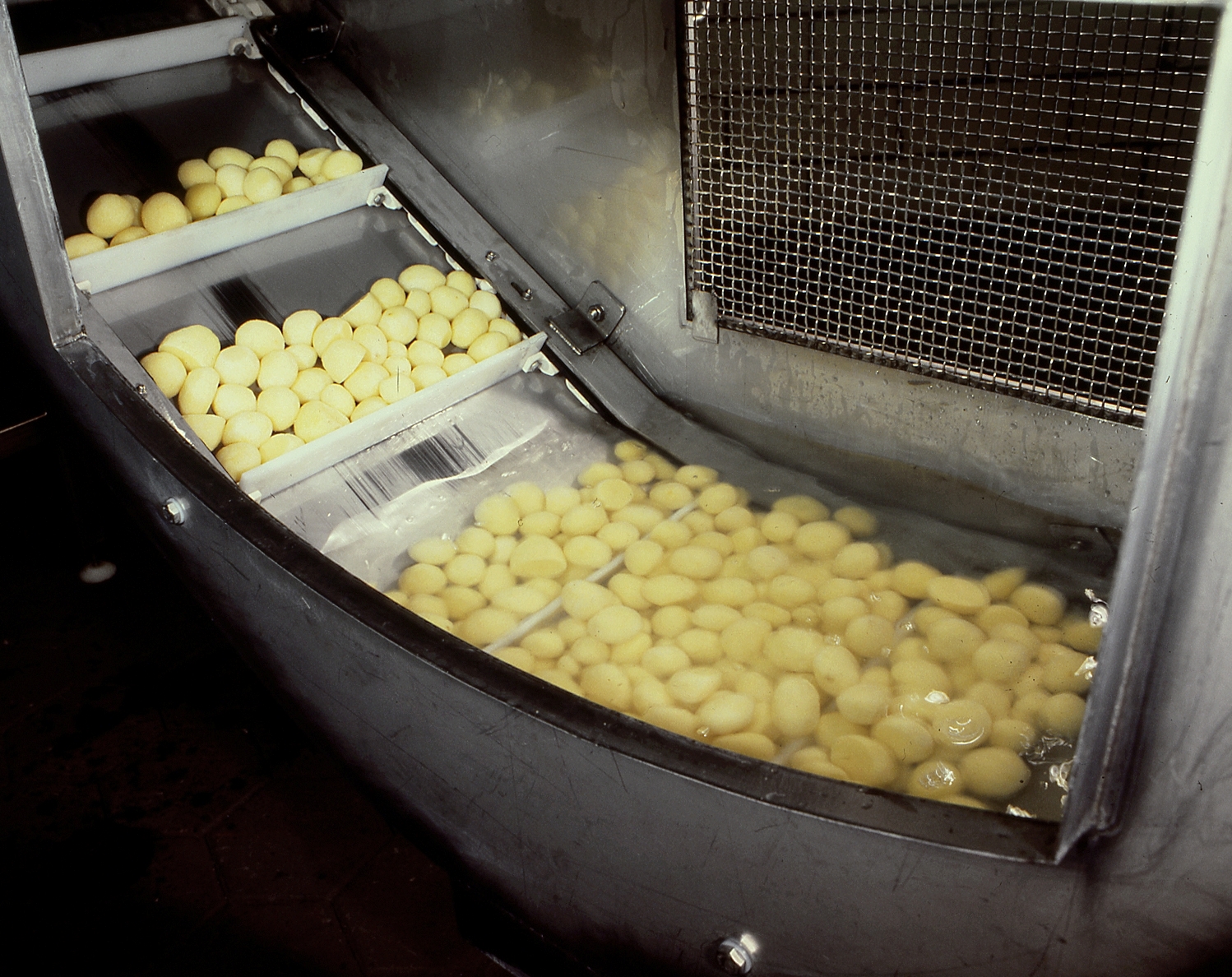 conveying peeled potatoes, etc.